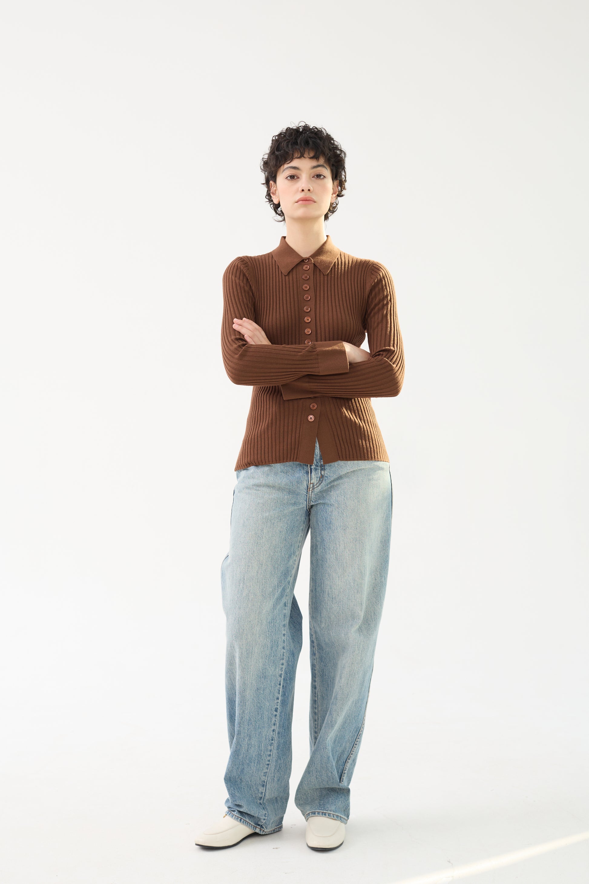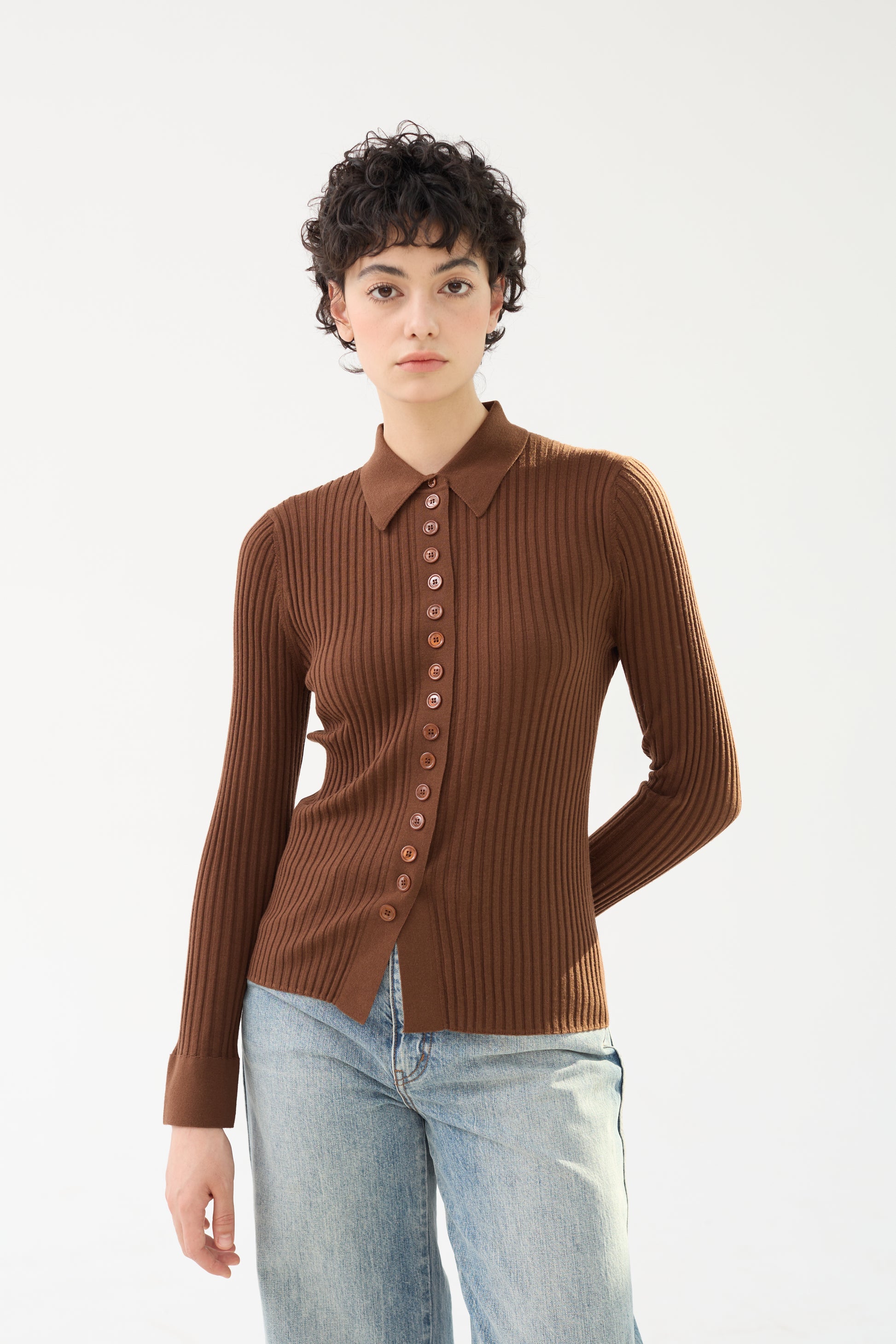 Fine Merino Wool Long Sleeve Knit Polo Shirt - Itch Free